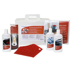 W skład zestawu wchodza: preparat do czyszczenia i ochrony stali nierdzewnej STALRENS, preparat do czyszczenia piekarnikow OVENRENS, preparat do czyszczenia płyt ceramicznych TOPRENS, skrobak do usuwania resztek jedzenia i uporczywych plam, ściereczka MICRO WIZARD do czyszczenia wszelkich powierzchni, silikonowy uchwyt garnka.