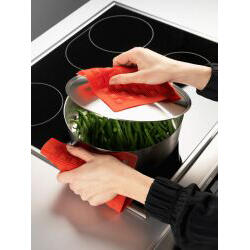 Chroni ręce przed wysoką temperaturą w czasie kontaktu z gorącymi garnkami oraz patelniami - wytrzymałość 1 minuta w temperaturze 230°C i dużo dłużej na niższych temperaturach.